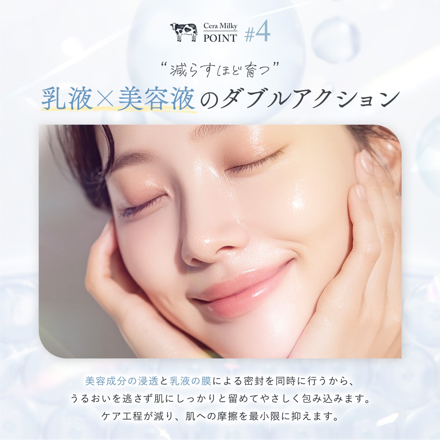 ◎素肌育point3”減らすほど育つ!”「乳液×美容液のダブルアクション」